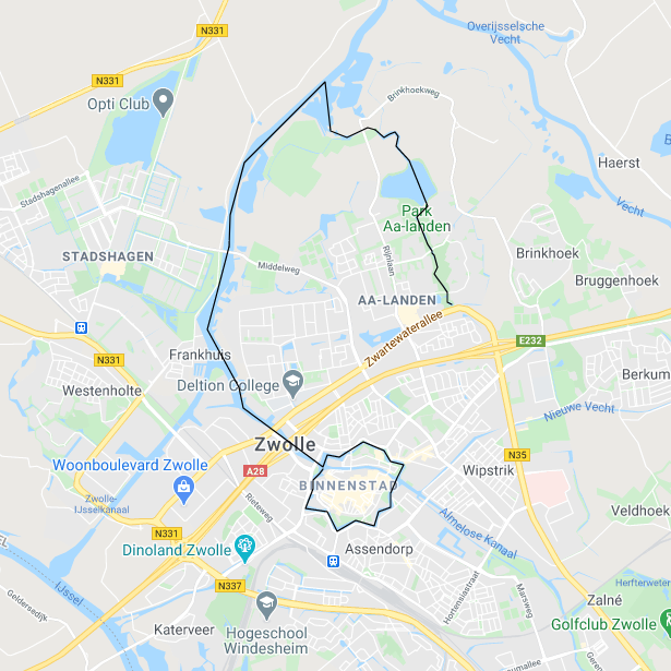 In Zwolle is het ook in de stad mogelijk om met je sup op te stappen. Maar omdat parkeren in het centrum altijd een beetje lastig is kiezen wij voor opstaplocatie buiten het centrum. In Zwolle hebben we een behoorlijk sup route uitgestippeld voor de ervaren supper. Het is een route van 16 km! Je vertrekt uit de wijk Aa landen in Zwolle. Je kan ook proberen ergens een opstap te vinden aan het zwarte water, dit scheelt je zeker 4 kilometer op de totale route.